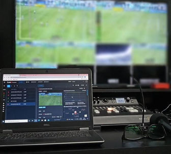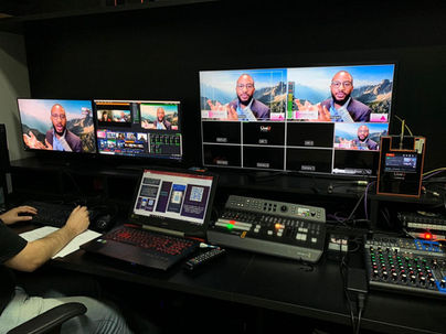 Control room/switcher in an attached room communicating with the studio (direction/production)